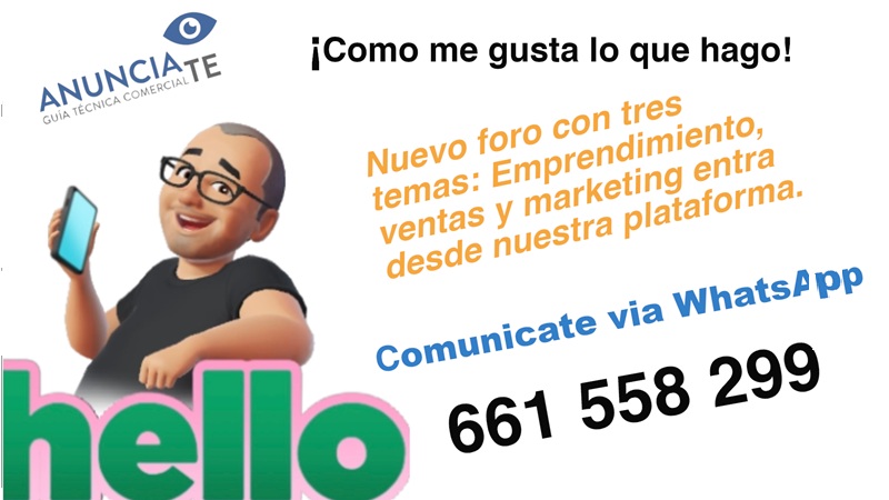 Haz como yo, crea tú propio espacio en esta plataforma...Anuncios en anuncia-te. Aquí tiene un sitio donde presentarse al mundo y donde los comerciales que componemos la famil...