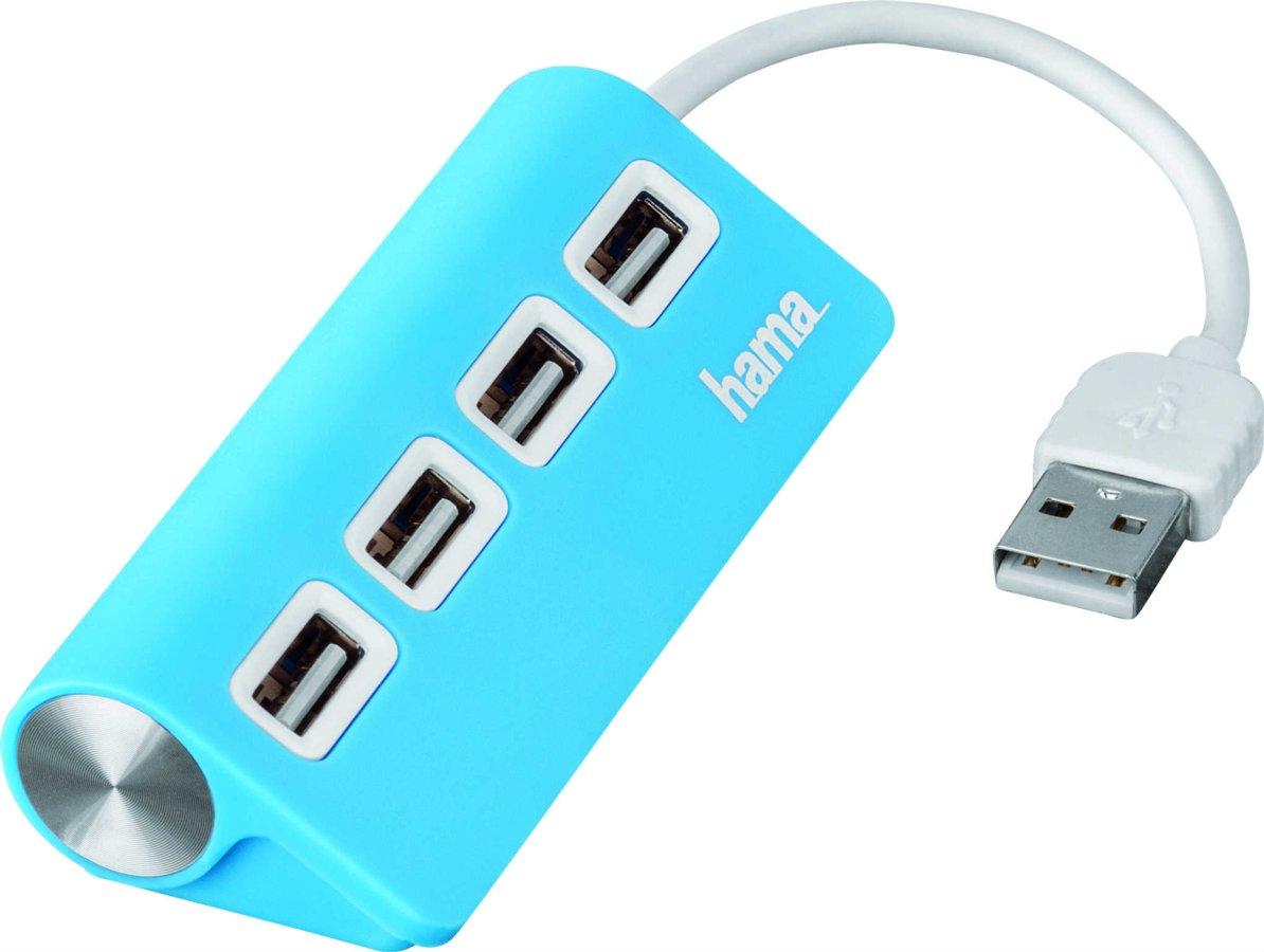 Hub 4 puertos - Hama 12179, USB 2.0, compatible con USB 1.1. 4 puertos USB en 1 Multiplica las entradas USB de tu ordenador o tablet y conecta hasta 4 dispositivos gracias a este hub de 4 puertos de Hama. El teclado, el raton, la impresora, el escaner... ¿siempre te faltan USB, verdad? Pues a partir de ahora eso ya no sera un problema gracias al Hub 4 puertos Hama 12179. El Hub Hama 12179 es de color azul y tiene 4 entradas hembras y 1 clavija macho USB 2.0, compatibles tambien con USB 1.1. Si te faltan puertos USB en tu portatil o tablet no te lo pienses mas!